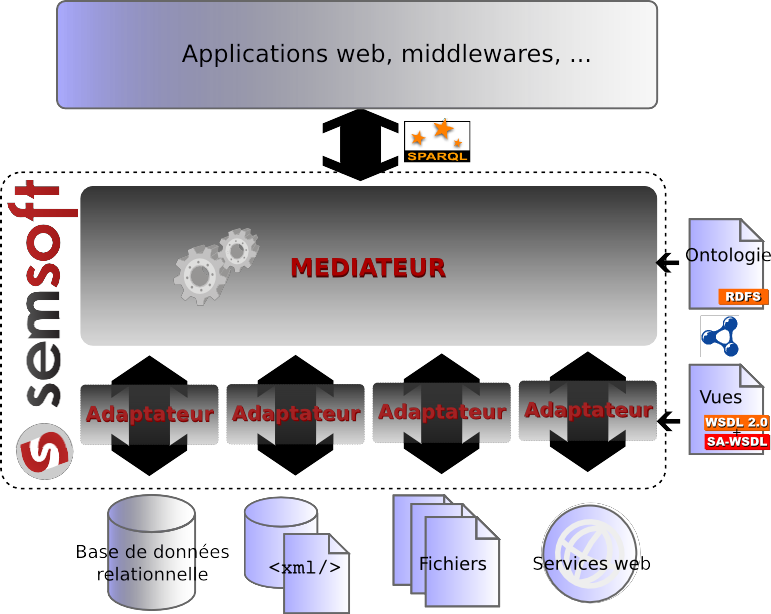 Semsoft (acronyme de « Semantic Software ») avec le soutien d’une équipe de recherche mixte INRIA/CNRS a développé une solution de fédération de données reposant sur les technologies sémantiques. Cette solution est la concrétisation de 10 ans de R&D.